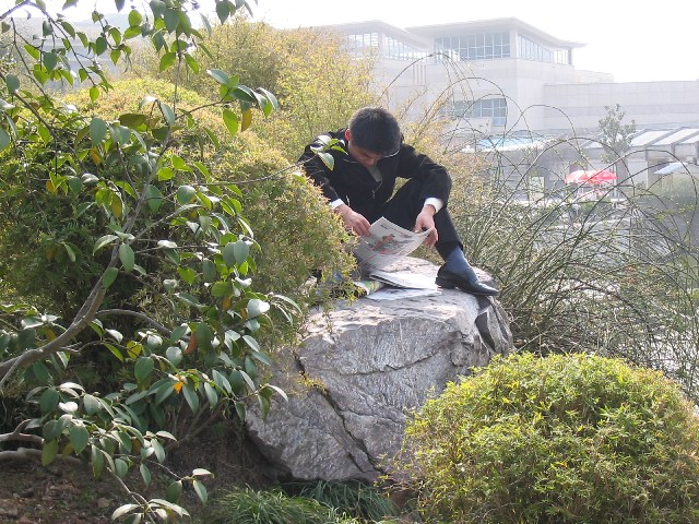Image Name: Chinese guy reading newspaper